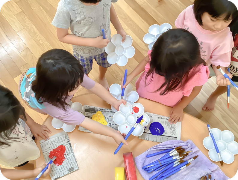 あそびを通して、考える力や感じる心などの非認知能力を育てています。 子どもたちが自分で考え、試し、発見する経験を大切にしながら、集中力や創造力、やり抜く力を自然と身につけていきます。 一人ひとりの「やってみたい」という気持ちを大切にし、成長につなげていきます。